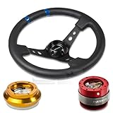 NRG-SRK-130H-RG+016R-BK+200RD, NRG Innovations 13.78" 350mm 3" Deep Dish Style Black Leather Blue Center Marking Racing Steering Wheel Combo with 6 Hole Short Hub Adapter with Gen 2.0 Red Quick Release Kit SRK-130H