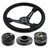 NRG-SRK-E36H+200CF+101MB+018R, NRG Innovations 13.78" 350mm 3" Deep Dish Style Black Leather Red Stitch Black Spokes Racing Steering Wheel Combo with 6 Hole Short Hub Adapter with Gen 2.0 Carbon Quick Release with Matte Black Lock Hub Kit SRK-E36HNRG Quick Release features many options that conventional ball-locking quick release system do not. It is specially engineered with raised sections to prevent the scratching and stretching of the hub while a self locking feature adds increased safety and functionality. Features racing styled for added style and look. Each unit is made from the highest quality aircraft grade aluminum and is anodized for maximum durability and finish.