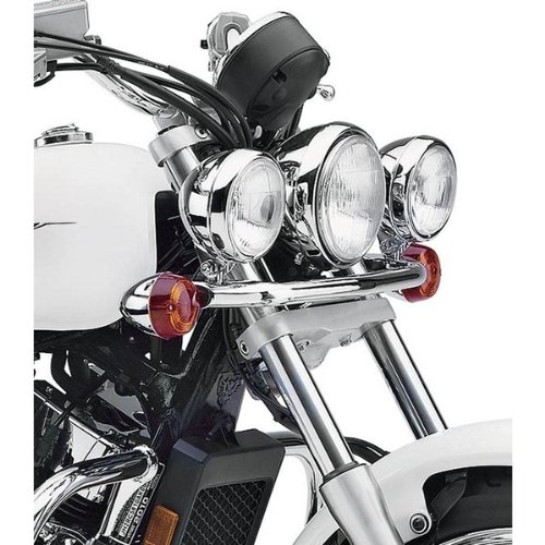 Complete kit includes light bar with pre-installed 4 -1/2 inches spotlights and triple-chrome-plated mounting bars custom-fit to each bike